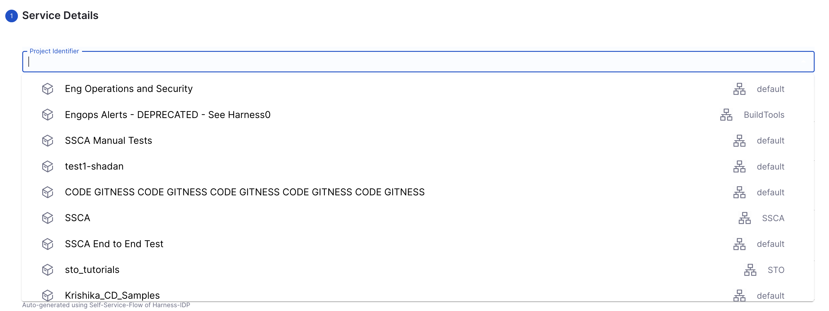 You can use these UI pickers in service onboarding workflows for developers to easily select a Harness project and organization. Take a look at this example. [IDP-868]